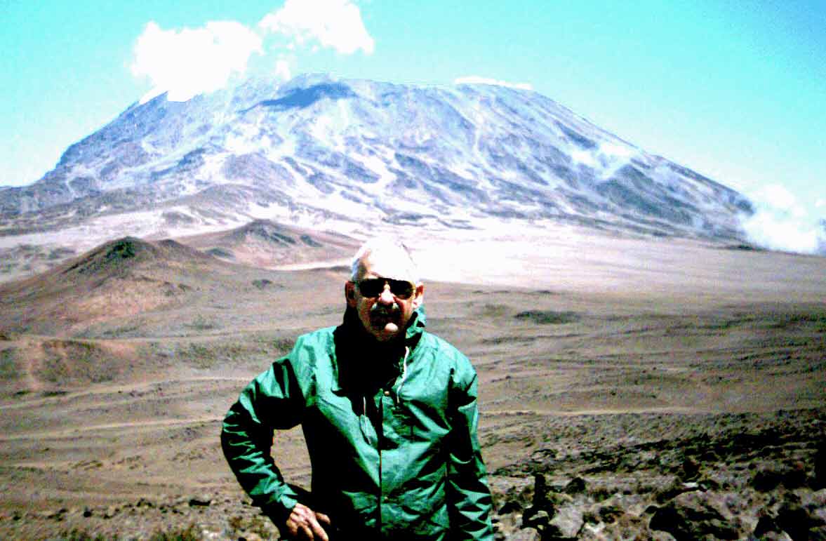 Although our route up the slopes of Kilimanjaro had been in a northwesterly direction, we did not approach the location of another phenomenal find. David Brashears, in his introduction to Audrey Salkfeld's book, "Kilimanjaro To The Roof of Africa", tells of discovering the sun-bleached bones of an elephant resting near 15,000' in the desolation of the alpine desert. Brashears "marveled at the elephant's perilous journey and contemplated the purpose of the difficult climb it had made."